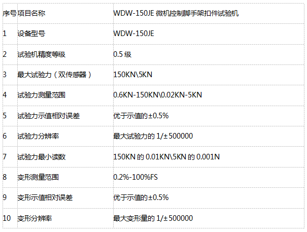 (1)WDW-150JE微機(jī)控制腳手架扣件試驗(yàn)機(jī)采用交流伺服驅(qū)動(dòng)器和交流伺服電機(jī),性能穩(wěn)定、可靠,具有過(guò)流、過(guò)壓、超速、過(guò)載等保護(hù)裝置。調(diào)速比可達(dá)1:100000。