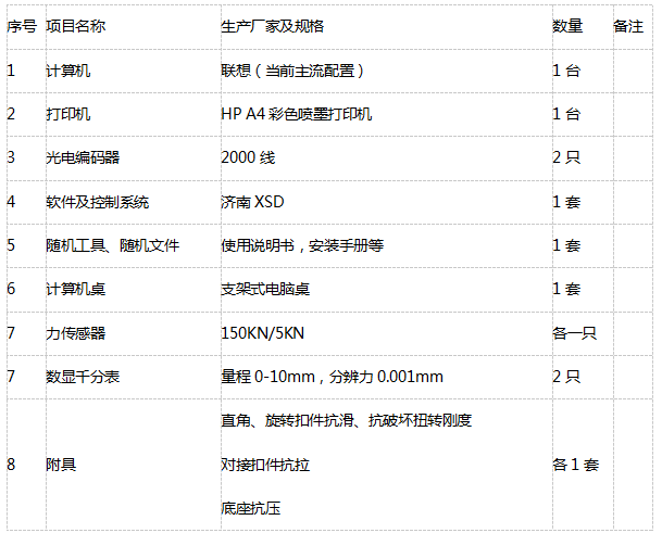 本公司生產(chǎn)的WDW-150JE微機(jī)控制腳手架扣件試驗(yàn)機(jī),主要適用于建筑工程中,對(duì)外徑為 Φ48.3mm的鋼管腳手架用直角扣件、旋轉(zhuǎn)扣件、對(duì)接扣件及底座進(jìn)行抗滑、抗破壞、扭轉(zhuǎn)剛度、抗拉、抗壓的所有力學(xué)性能的檢測(cè)。精密的自動(dòng)控制和數(shù)據(jù)采集系統(tǒng),實(shí)現(xiàn)了數(shù)據(jù)采集和控制過(guò)程的全數(shù)字化調(diào)整。可完成最大承載拉力、抗拉強(qiáng)度、伸長(zhǎng)變形、延伸率等技術(shù)指標(biāo)的檢測(cè)。以上檢測(cè)參數(shù)在試驗(yàn)結(jié)束后,由計(jì)算機(jī)根據(jù)試驗(yàn)開(kāi)始時(shí)設(shè)置的試驗(yàn)參數(shù)條件自動(dòng)計(jì)算,同時(shí)顯示相應(yīng)的試驗(yàn)結(jié)果,各檢測(cè)參數(shù)在試驗(yàn)結(jié)束后既可查詢顯示,也可連接打印機(jī)進(jìn)行打印輸出。