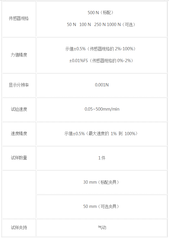 · 配置全球知名品牌的力值測試系統,提供優于0.5級的力值精度,重復性更佳,多量程選擇,測試更靈活